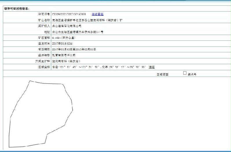 定海区金塘镇新丰社区东岙山建筑用石料(凝灰岩)矿 审批结果